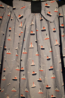 I opted to keep this outfit really simple so as not to overshadow the boats or the bow. I am working on an idea for another outfit option using this skirt. I'm thinking a navy blue sort sleeved (maybe puff sleeved) button up shirt with a red neck scarf tied to the side... I do not yet own said shirt- but the scarf is ready and waiting!